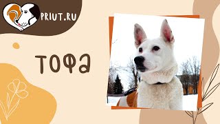 Тофа — собака довольно необычного окраса, белая с рыжими пятнами, прямо как бурёнушка. Очень социальная, уверенно чувствующая себя в городе, общительная, но в то же время самодостаточная собака. Не всегда идеально ходит на поводке, но в силу её некрупного размера это не создаёт особенных трудностей, кроме того, Тофа вполне адекватно реагирует на коррекцию. На прогулках не обращает внимания на прохожих и других собак, она живёт в мире запахов, Тофа всё время что-то нюхает, исследует и изучает при помощи своего носа. Иногда, при особенно заинтересовавшем её запахе, внимание Тофы удаётся вернуть не сразу. Это добрая, уверенная и неконфликтная собака. Поступила в приют после смерти хозяйки. Выгнали жить на лестницу. По осмотру: новообразование каудальных пакетов молочной железы.