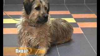 Пирата подобрали на улице после того, как его сбила машина. Сейчас он абсолютно здоров. Пират очень ласковая собака. Любит гулять, играть. С собаками общается выборочно.